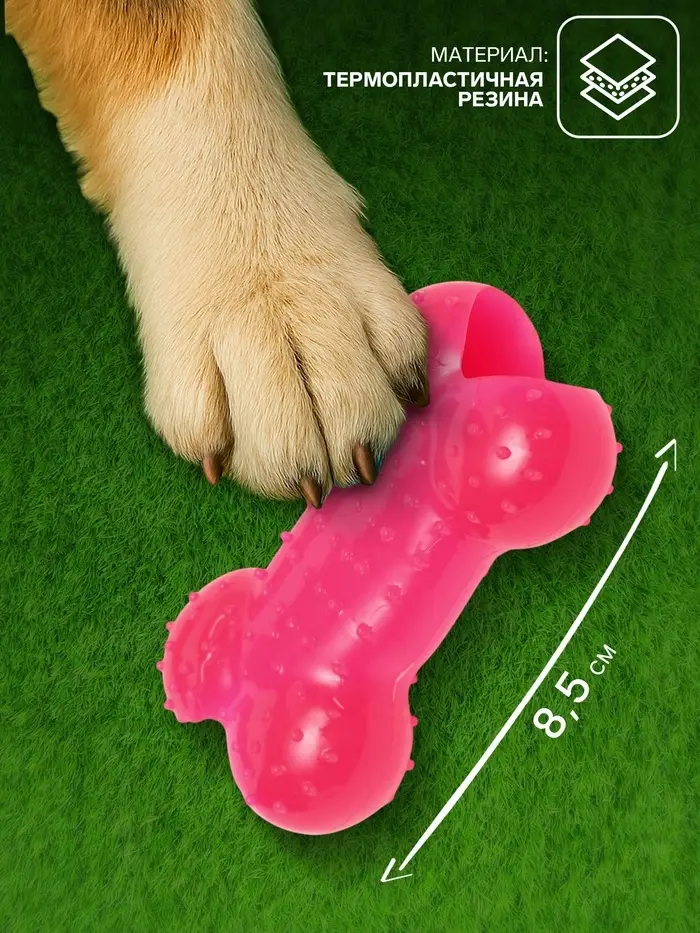 Жевательная игрушка для собак «Кость малая», 8.5 см, суперпрочная, розовая