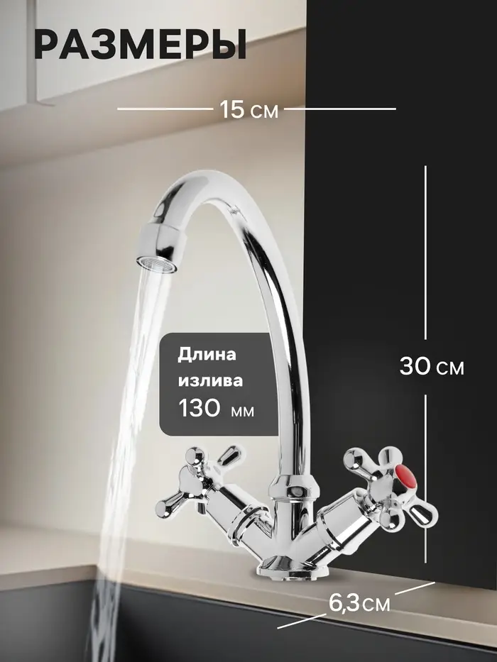 Применение: Для кухни в традиционном стиле с раздельной подачей воды. Простая конструкция и привычное управление.