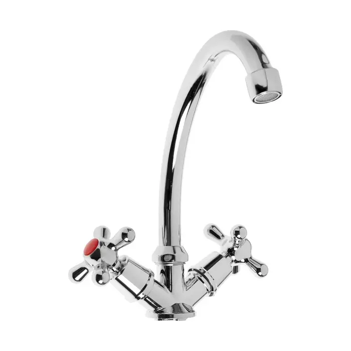 Вентильный смеситель для кухни хром — классическая модель с раздельными кранами. Корпус из цинкового сплава с хромированным покрытием.
