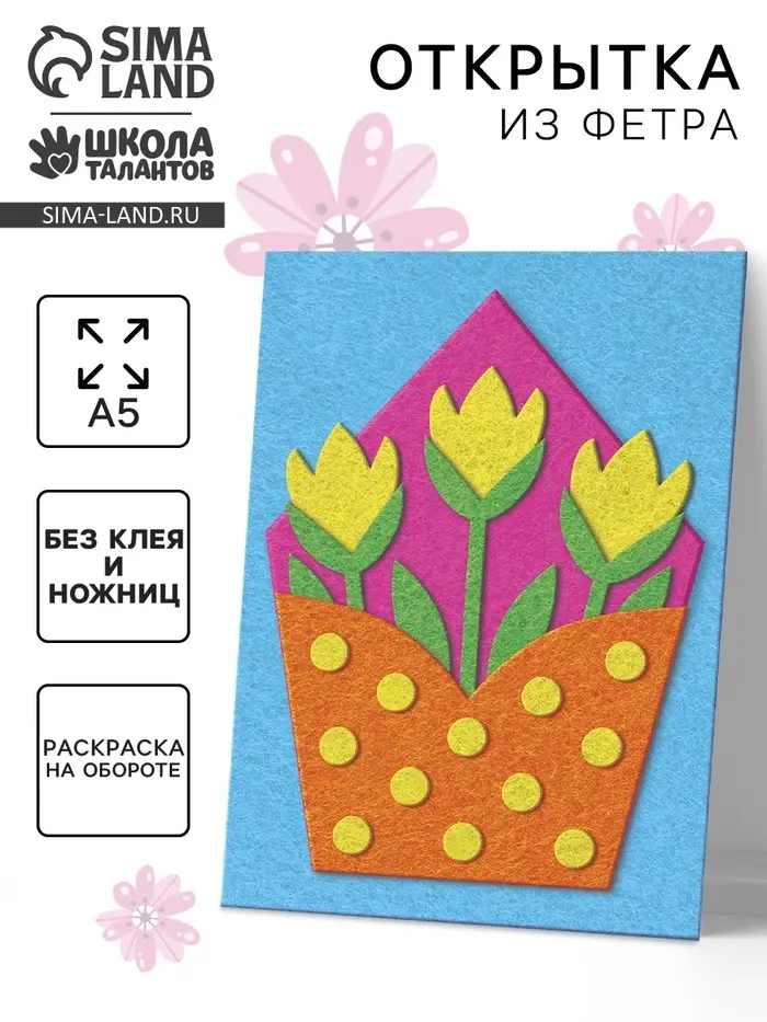 Поделка к празднику — отличный повод провести время с ребёнком и создать замечательную открытку. Детям нравится мастерить из самых невероятных материалов. Оригинальный набор для создания фетровой открытки по-настоящему увлечёт ребёнка и станет удачным подарком для талантливого малыша!