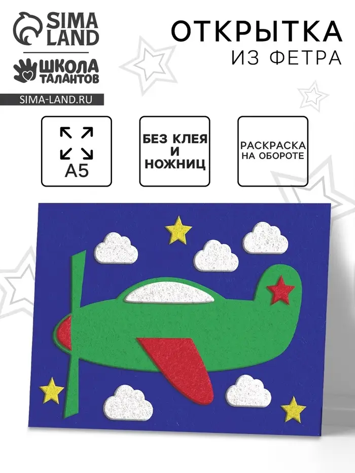 Поделка к празднику — отличный повод провести время с ребёнком и создать замечательную открытку. Детям нравится мастерить из самых невероятных материалов. Оригинальный набор для создания фетровой открытки по-настоящему увлечёт ребёнка и станет удачным подарком для талантливого малыша!