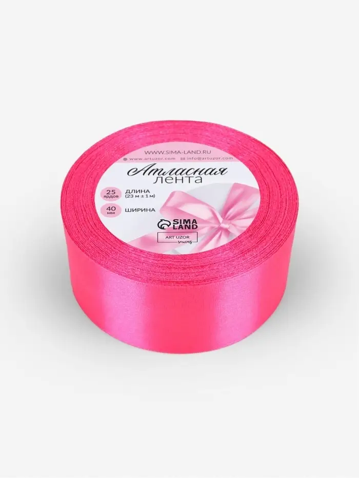 Лента атласная, 40 мм, 23±1 м, ярко-розовая №190