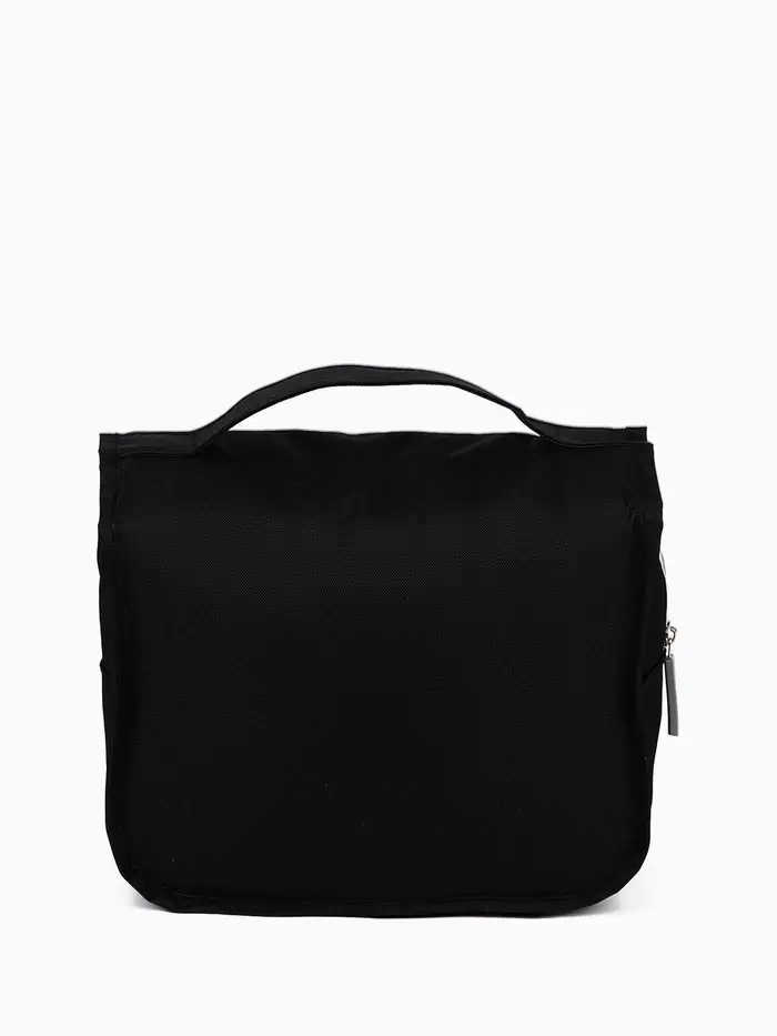 Эта чёрная дорожная косметичка — ваш личный организатор для любых поездок. Она создана, чтобы держать средства по уходу в идеальном порядке, освобождая вас от поисков в сумке или чемодане. Раскладная конструкция с двумя отделениями мгновенно превращает компактный чехол в функциональную станцию на крючке, будь то ванная в отеле или собственная гардеробная.
