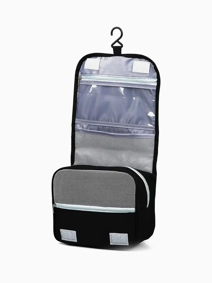 Больше не нужно перекладывать всю косметику в ванную. Раскройте косметичку и повесьте её — все ваши средства останутся чистыми и будут как на ладони. Два отделения помогают разделить уходовую косметику и декоративную, гигиенические принадлежности или мелочи для бритья. Это решение для тех, кто ценит организованность и своё время в путешествиях и дома.