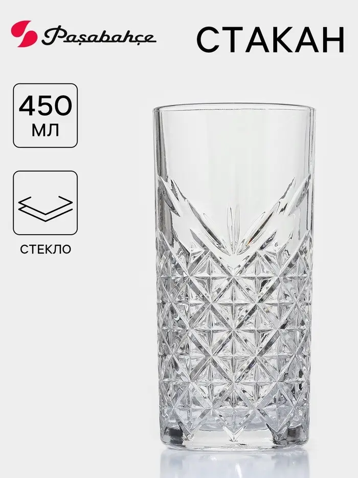 Стакан высокий Paşabahçe Timeless, 450 мл, стекло, прозрачный