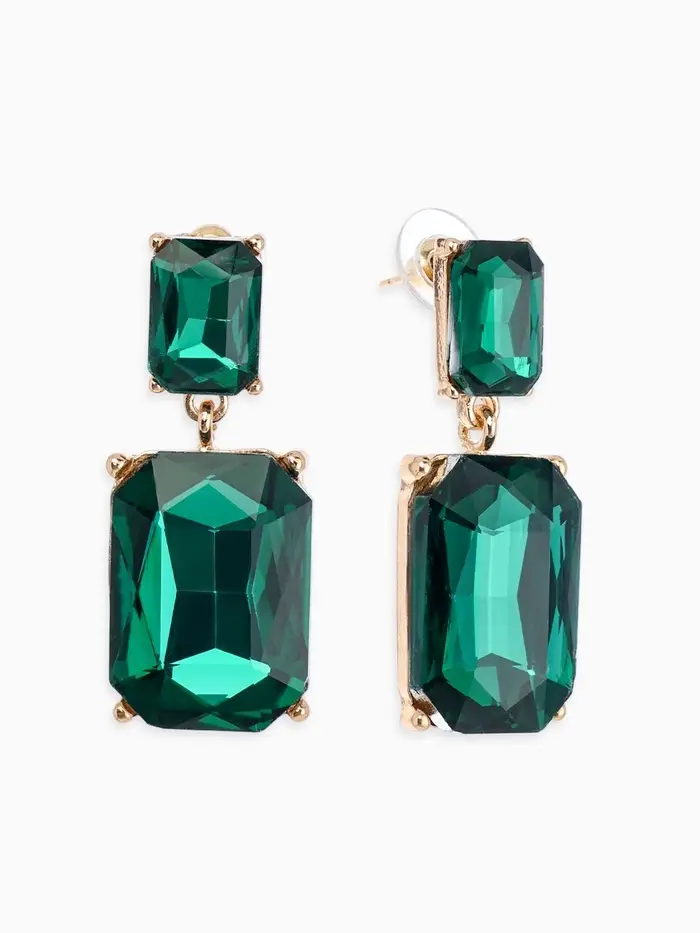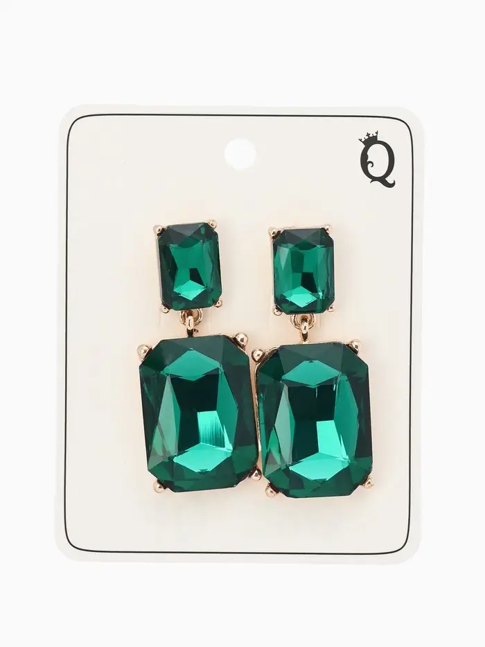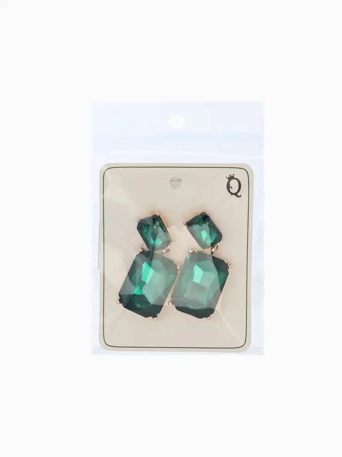 Серьги со стразами «Клео», классика, цвет изумрудный в золоте
