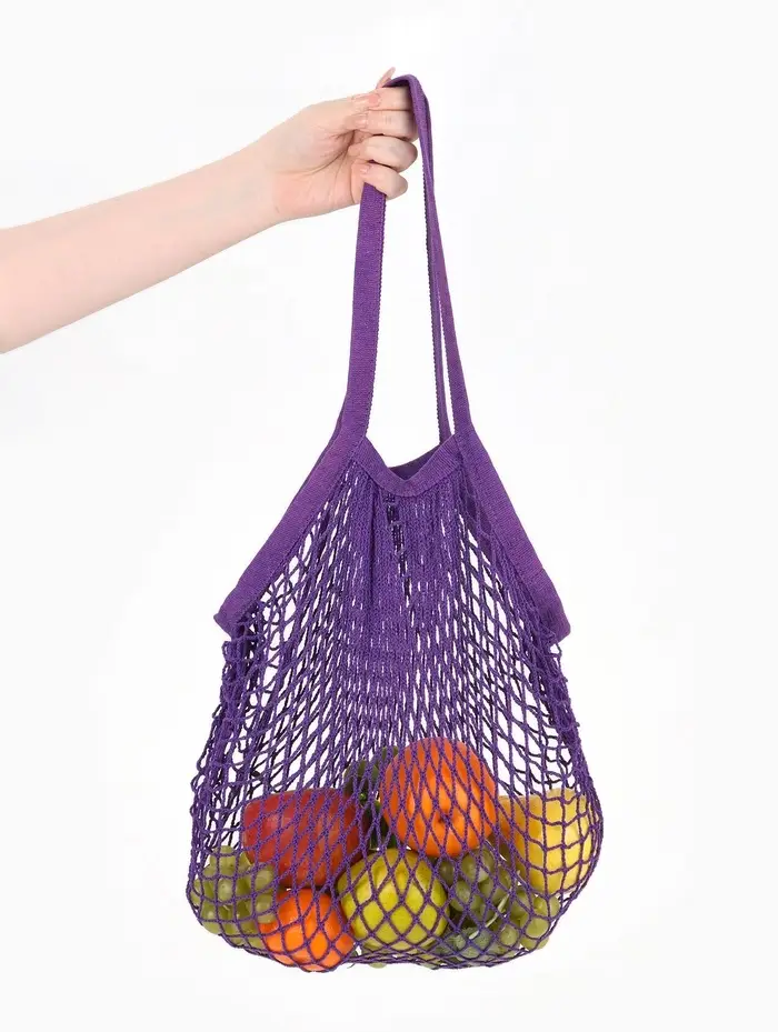 Сетчатые сумки из хлопка, произведенного с заботой о людях и природе, позволят вам обходиться без одноразовых пластиковых пакетов, а значит, уменьшить воздействие на климат. Кроме того, в таких сумках можно хранить фрукты и овощи.