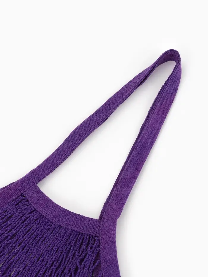 Сумка - авоська плетёная, ручка 17 см, клетка 1.5 см, фиолетовая