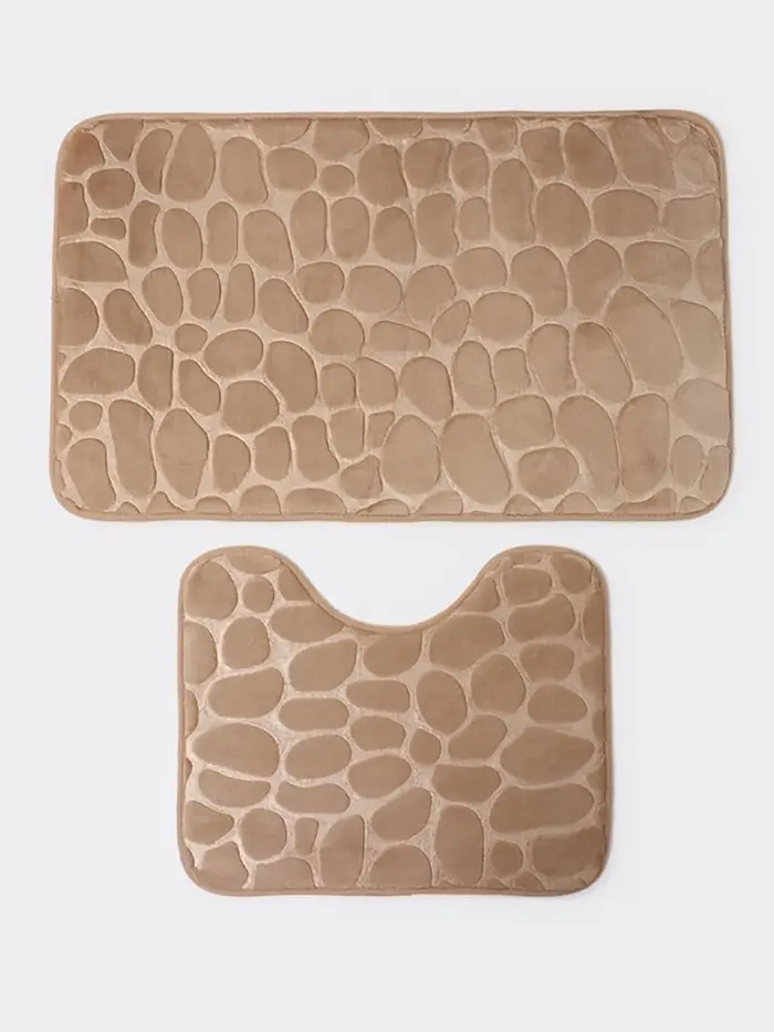 Коврики для ванной и туалета Доляна «Камни», 2 шт., 40×50, 50×80 см, бежевые
