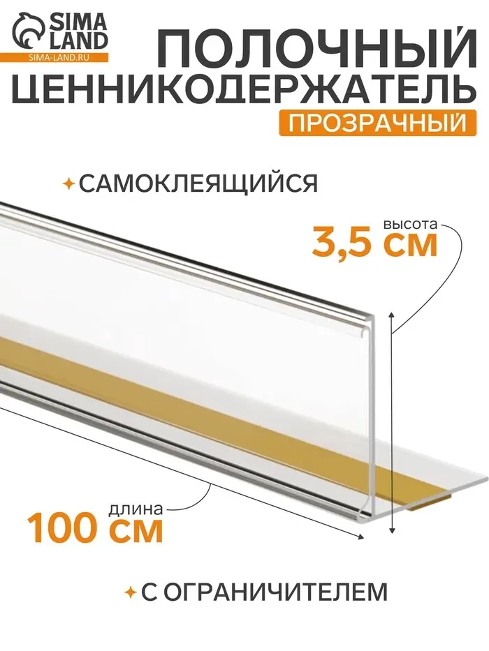 Ценникодержатель полочный самоклеящийся с ограничителем — это идеальное решение для размещения ценников и информационных табличек на полках. С длиной 1000 мм он идеально подходит для организации ценников на длинных полках в магазинах, супермаркетах и торговых точках. Самоклеящаяся основа позволяет легко и быстро установить держатель, не требуя дополнительных инструментов или креплений.