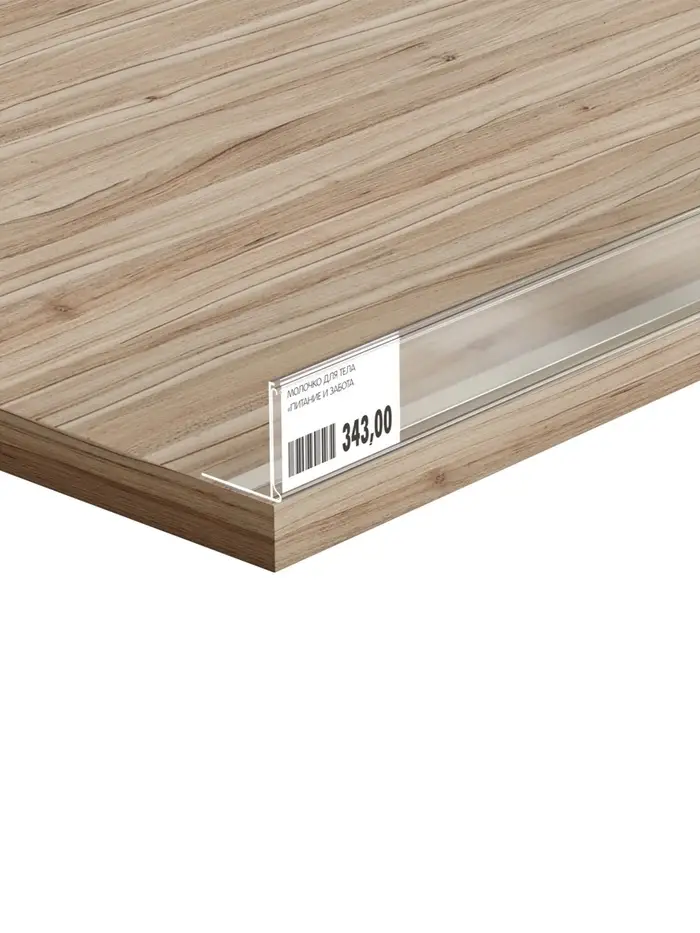 Прозрачный цвет ценникодержателя придает ему аккуратный и невидимый вид, который не отвлекает внимание от ценников, обеспечивая при этом отличную видимость информации. Ограничитель надежно удерживает ценник на месте, предотвращая его случайное смещение или падение.