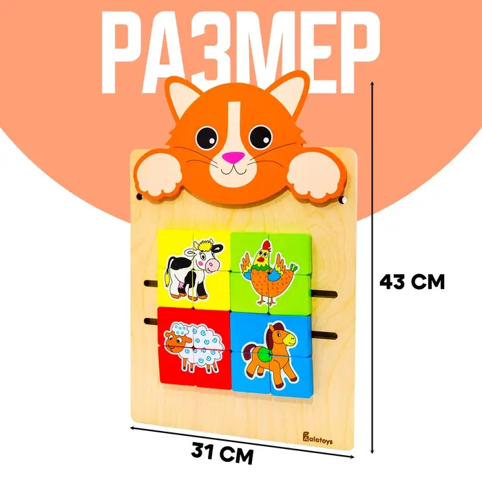 Настенная бизидоска «Котик» Alatoys, деревянная