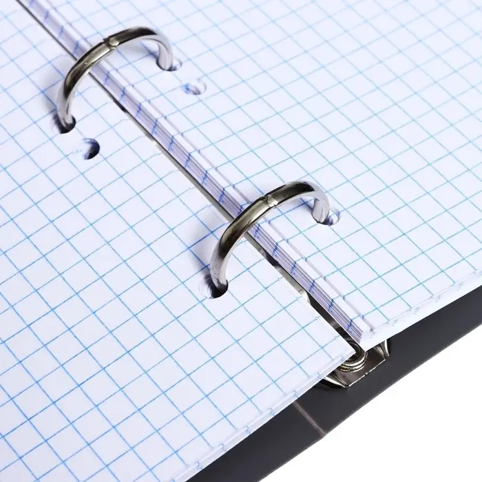 - Кольцевой механизм надежно фиксирует листы и обеспечивает полное раскрытие.