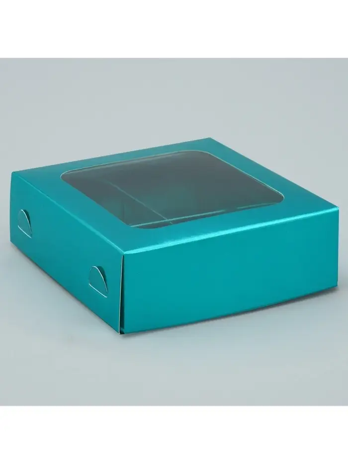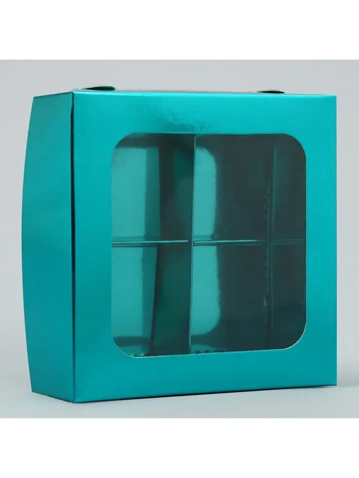 Коробка для конфет, кондитерская упаковка, 4 ячейки, «Голубая», 10.5×10.5×3.5 см