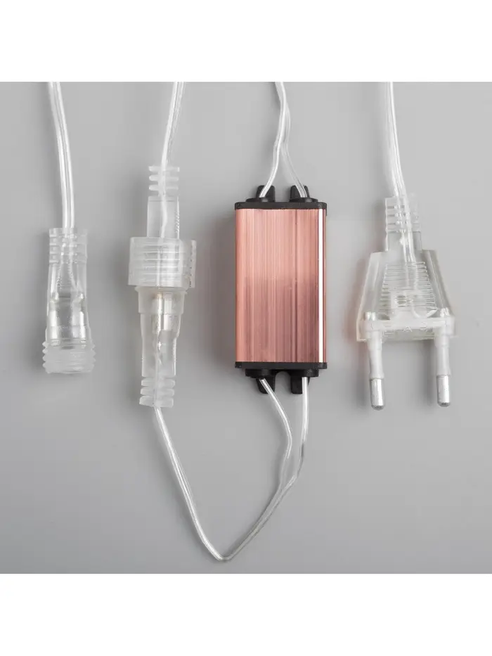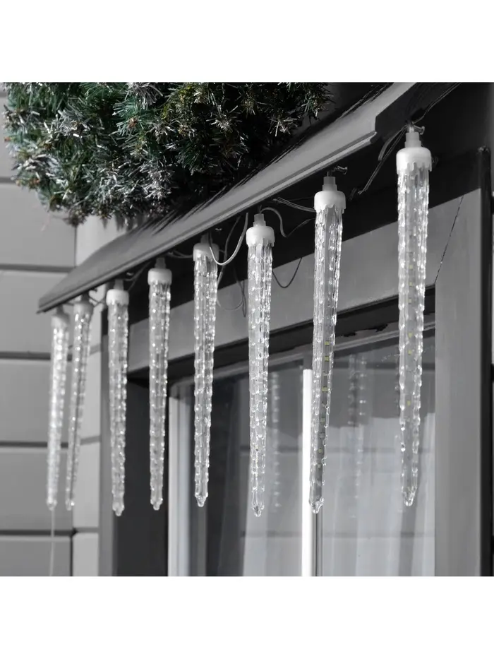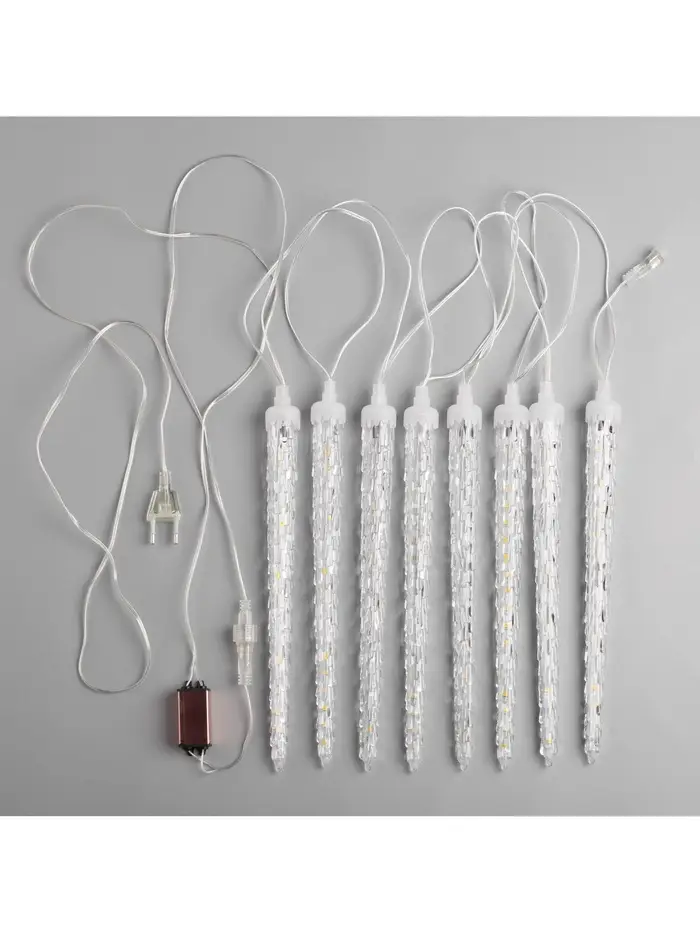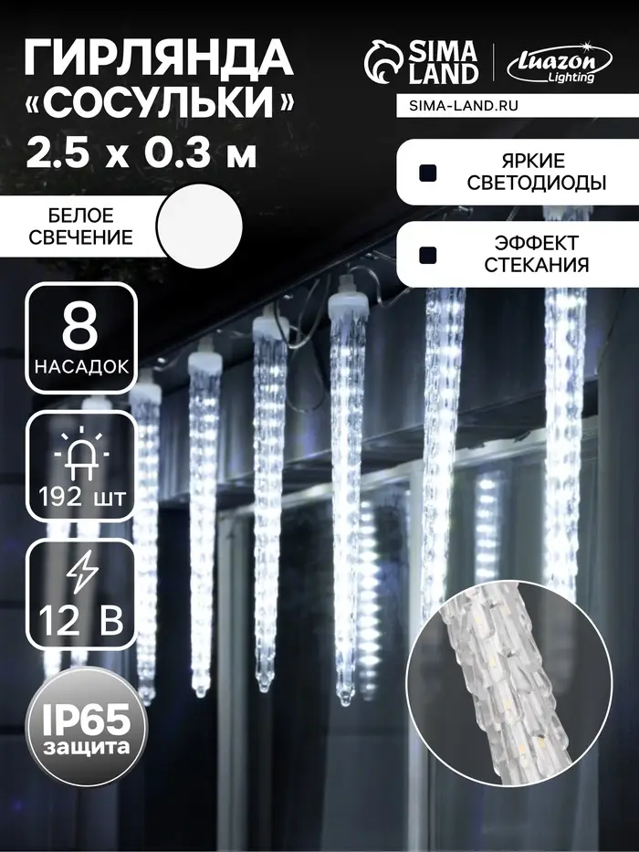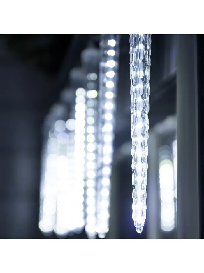 Гирлянда «Сосульки рифленые» 2.5×0.3 м, IP65, прозрачная нить, 192 LED, свечение белое с эффектом стекания, 12 В