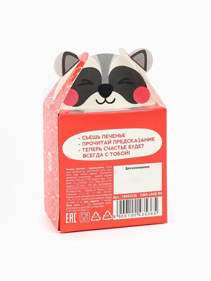 Печенье с предсказанием «Счастлив как енотик», 1 шт.