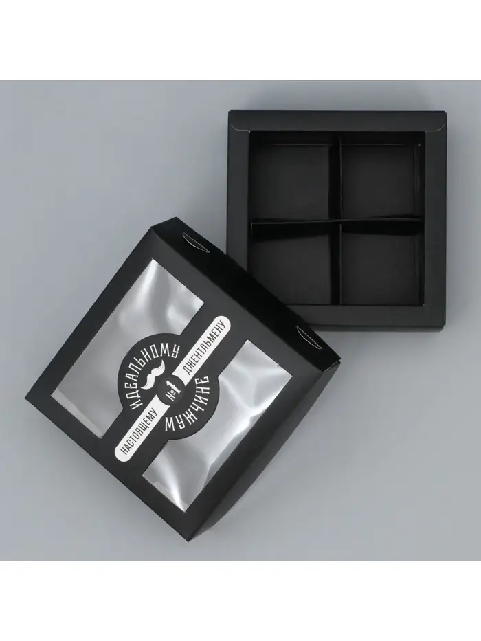 Коробка для конфет, кондитерская упаковка, 4 ячейки, «Настоящему мужчине», 10.5×10.5×3.5 см