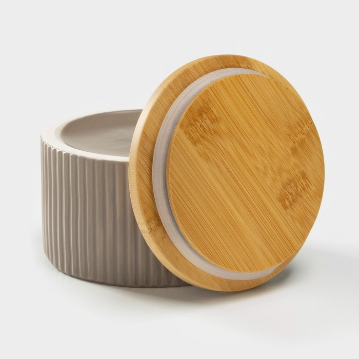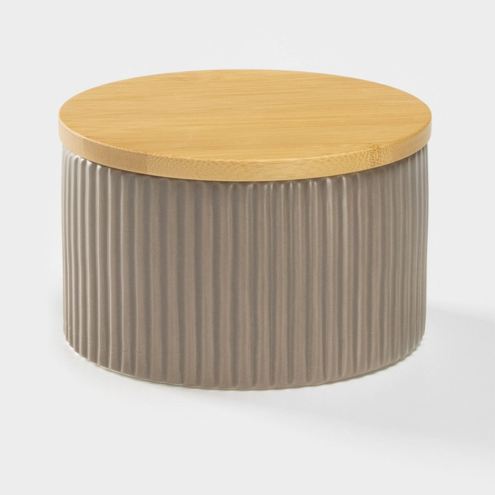 Банка для хранения сыпучих продуктов «Дымка», 570 мл, 12×7,5 см, с бамбуковой крышкой, керамическая, цвет бежевый