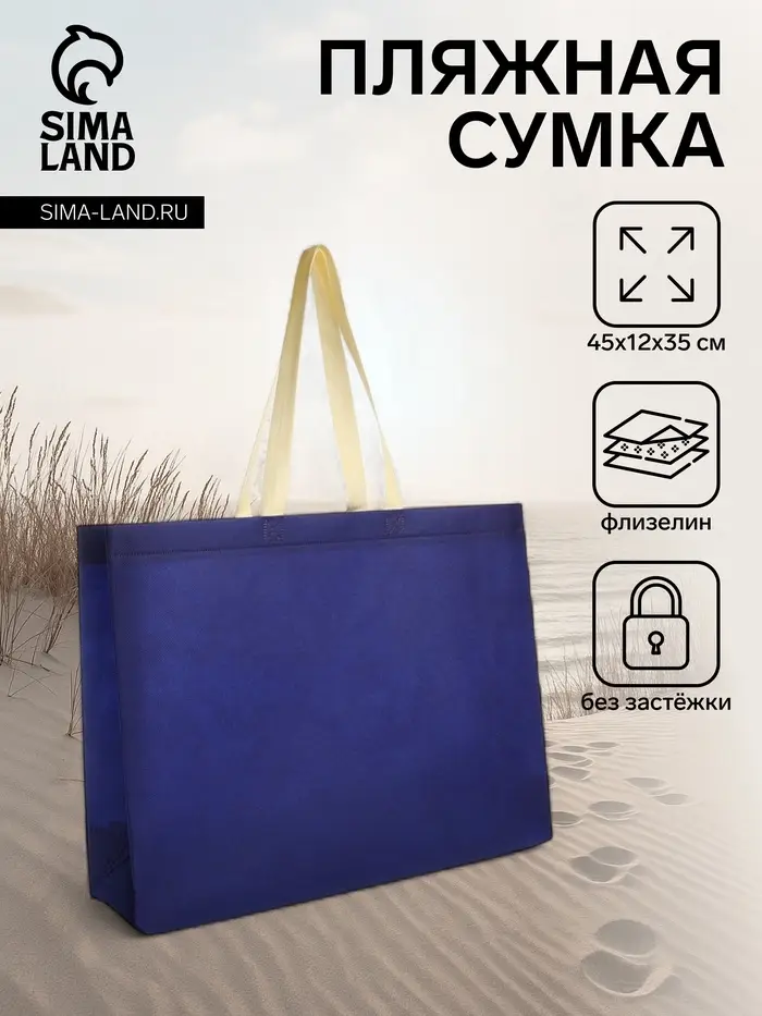 Сумка пляжная без застёжки, 45×12×35 см, однотонная, синяя