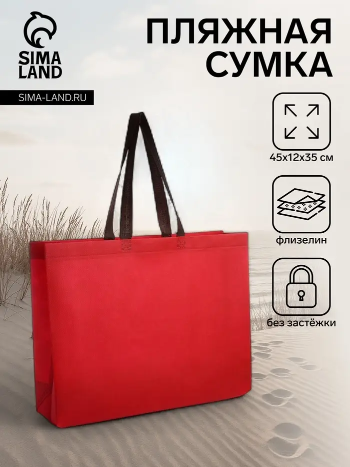 Пляжная сумка-шопер яркого красного цвета станет надежным спутником в летний сезон. Просторное отделение без застёжки даёт быстрый доступ к вещам, а мягкая конструкция из флизелина легко складывается для хранения.