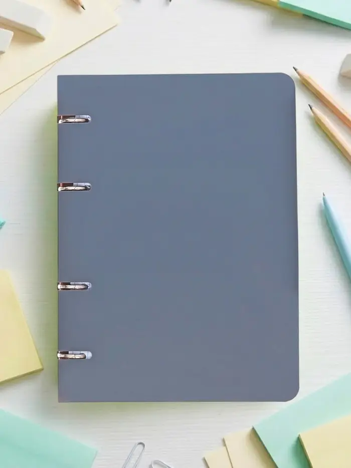 Серая тетрадь на кольцах формата А5 — ваш надежный спутник для учебы, работы и творчества. Пластиковая обложка защищает страницы от повреждений, а замена блока дает вам свободу вести записи так, как вам удобно.