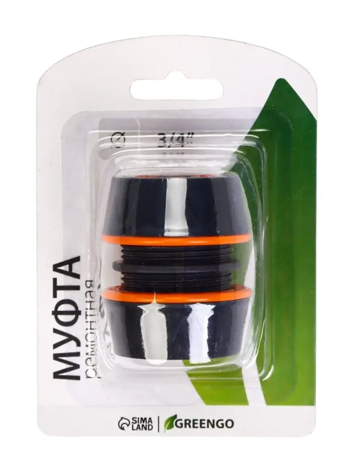 Муфта соединительная, для шлангов 3/4" (19 мм), цанговое соединение, прорезиненный пластик, Greengo