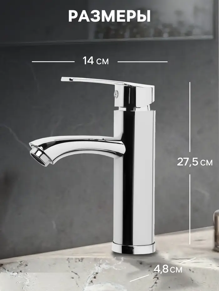 - Рычажное управление: Одна рукоятка регулирует напор и температуру. Механизм — керамический картридж 25 мм.