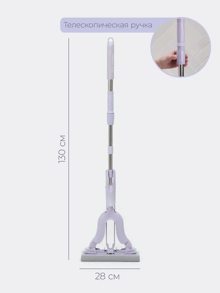 - Телескопическая ручка длиной до 130 см подстраивается под ваш рост.
