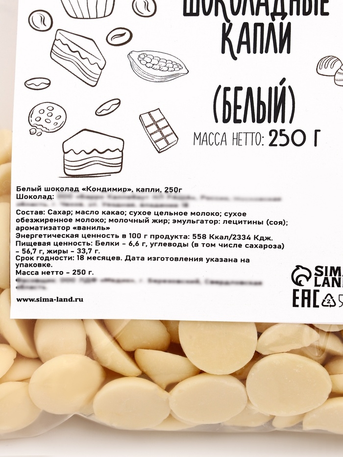 Белый шоколад кондитерский в каплях используется в приготовлении различных десертов. Это позволяет изготавливать из него как плитки, шоколадки так и полые фигурки. Превосходный молочно-сливочный вкус, присутствуют нотки ванили, карамели. Благодаря чему шоколад легко сочетается с самыми разными ингредиентами, что делает его универсальным. Белый шоколад будет отличным подарком и порадует как детей, и взрослых, так мужчин, и женщин.