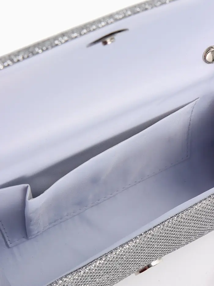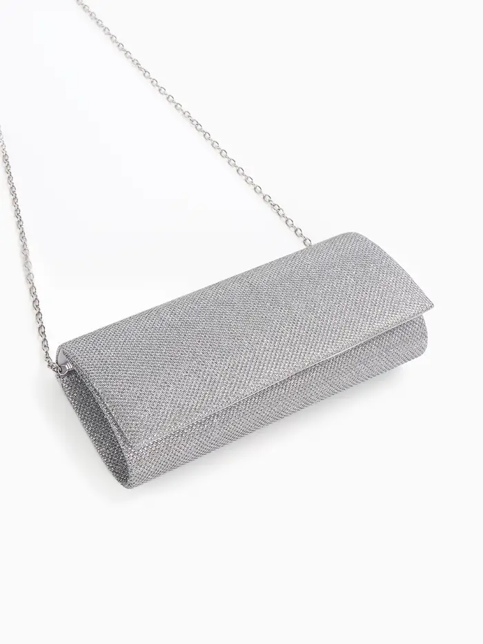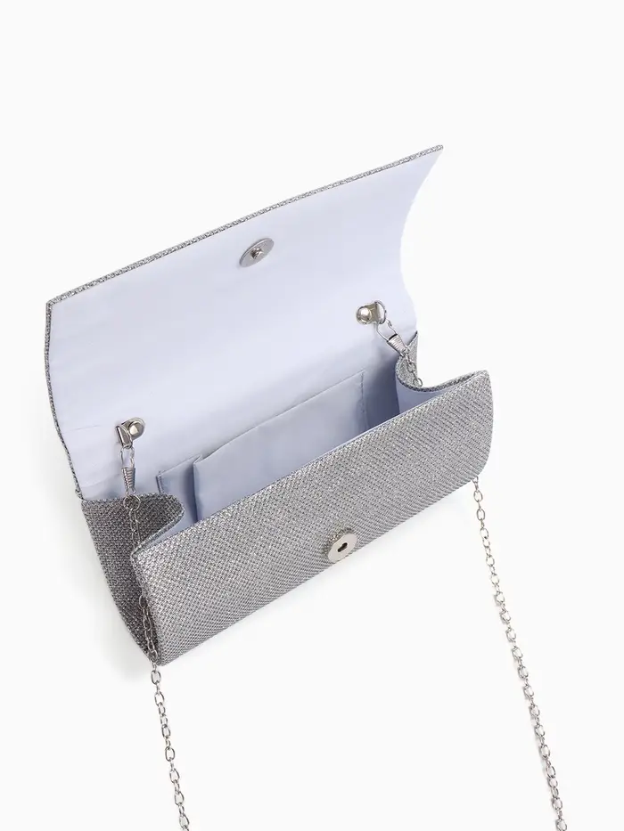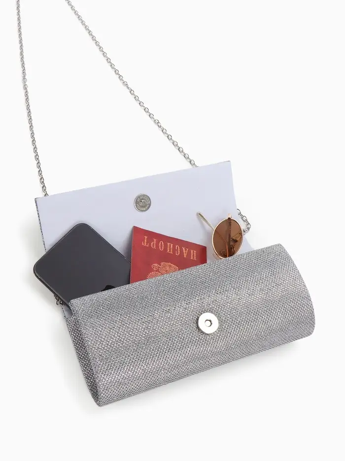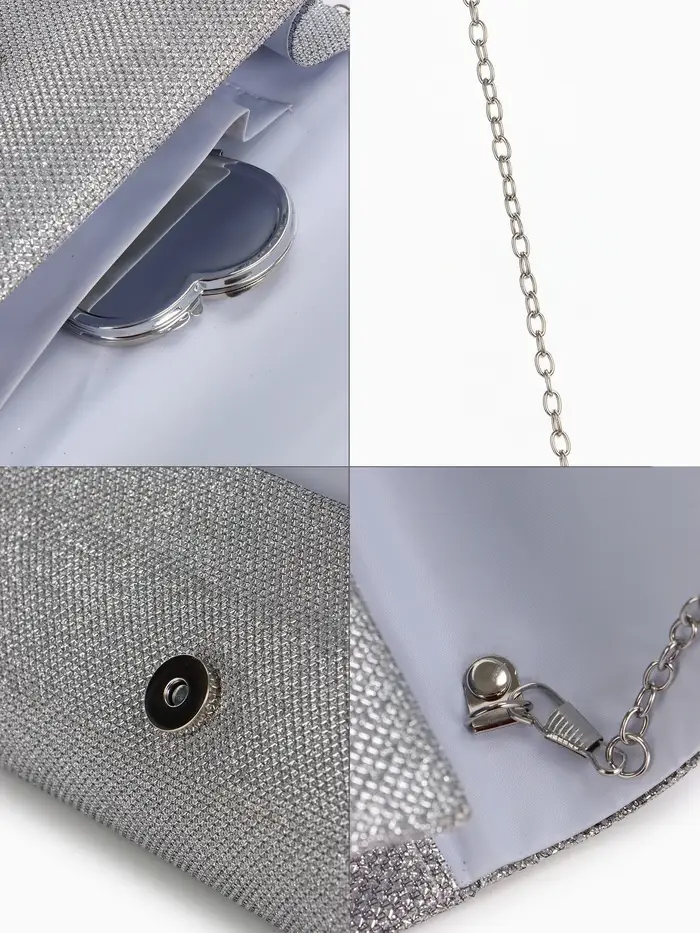 Сумка-клатч вечерняя на магните, на серебристой цепочке, блестящая, серебристая