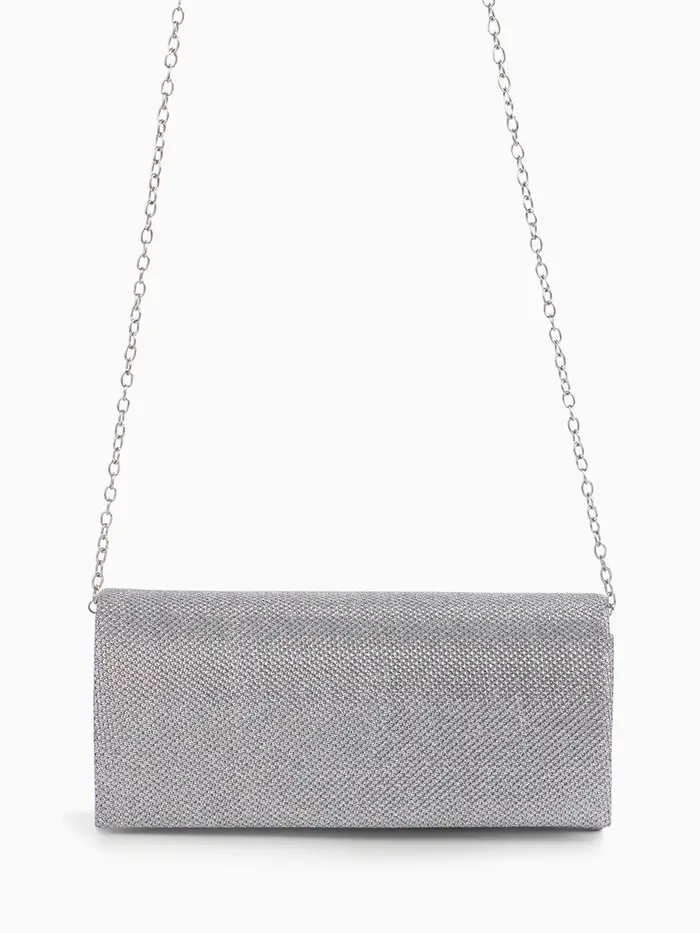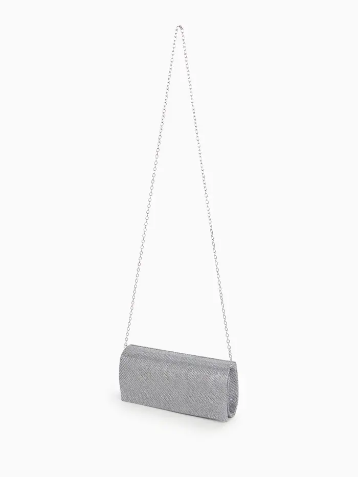 Сумка-клатч на магните, длинная цепь, цвет серебристый