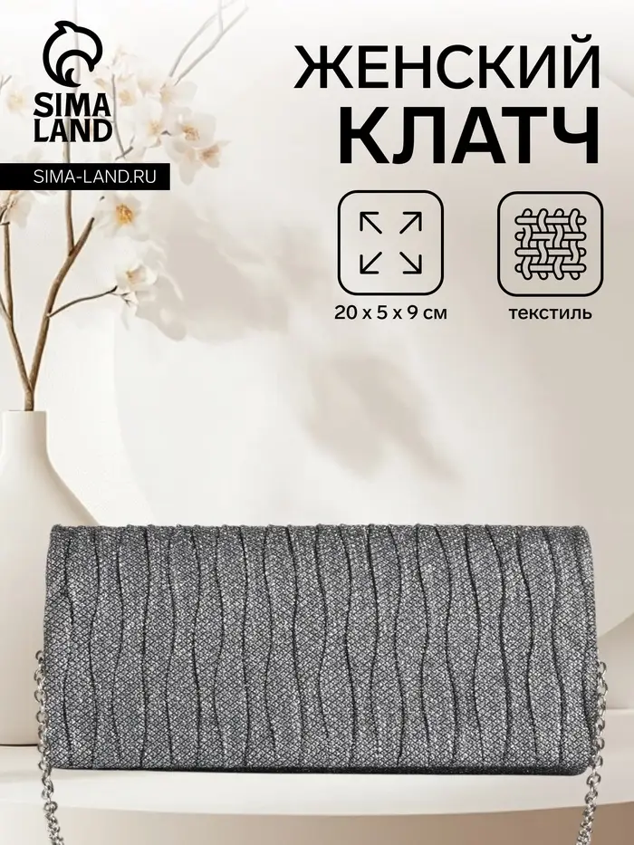 - Высококачественный текстиль: Изготовленная из прочных и долговечных материалов, сумочка обладает жестким каркасом, который сохраняет ее форму. Серебристая однотонность и фурнитура в тон добавляют аксессуару неповторимой изысканности.