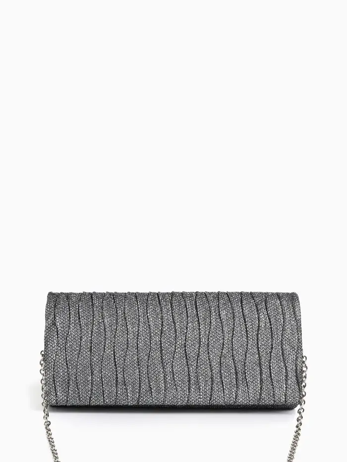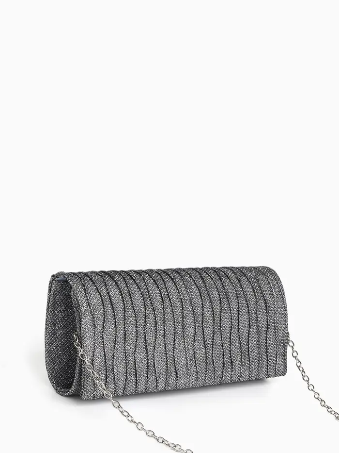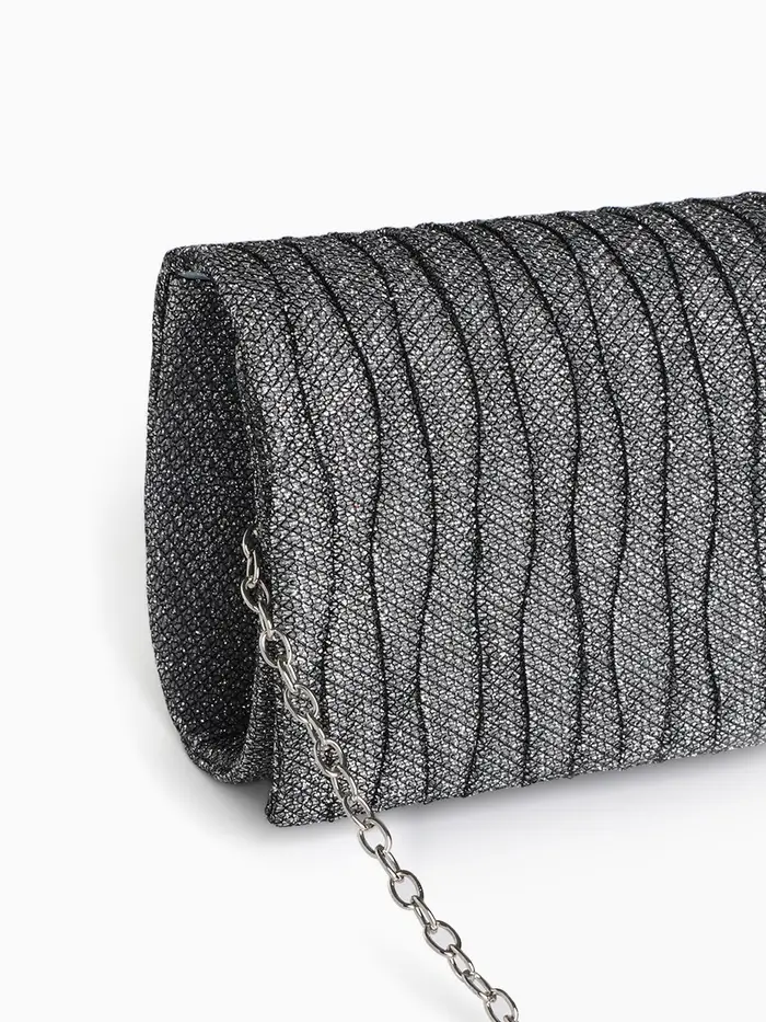 Сумка-клатч женская вечерняя на магните, на длинной цепочке, комбинированная, серая/серебристая