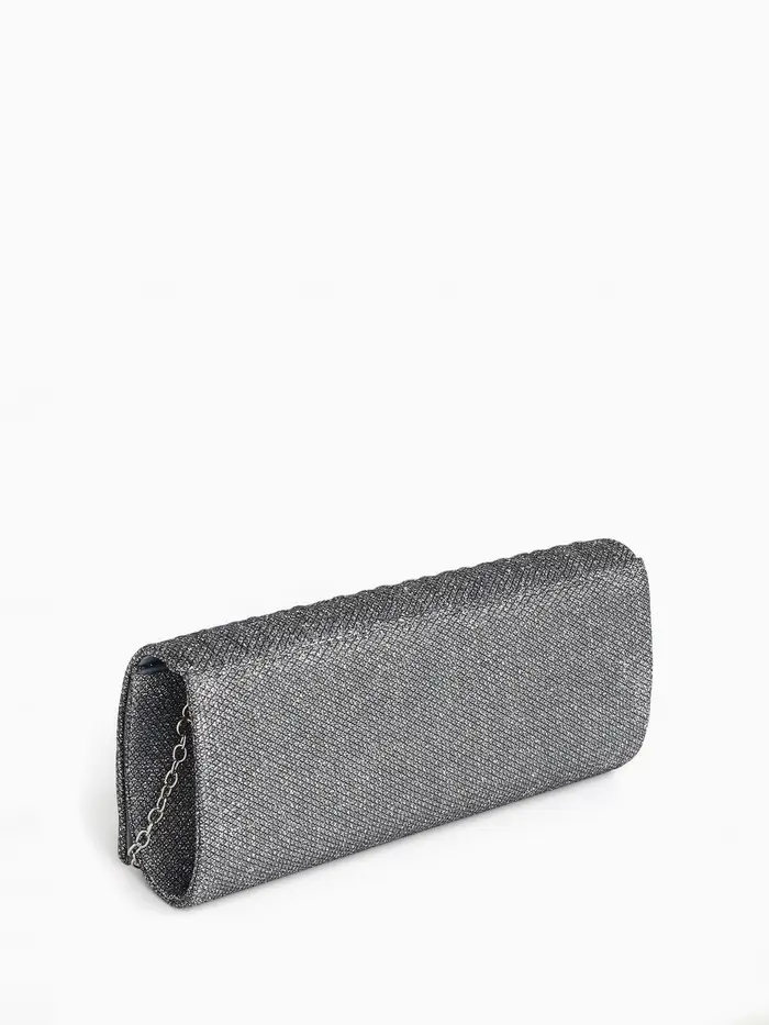 Сумка-клатч на магните, длинная цепь, цвет серебристый