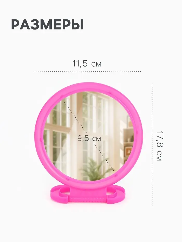 Круглое настольное зеркало в нежно-розовом цвете сочетает удобство и стиль. Диаметр зеркала 9,5 см обеспечивает чёткое отражение без увеличения. Универсальный формат с возможностью настольной установки или подвешивания подходит для разных помещений и задач.