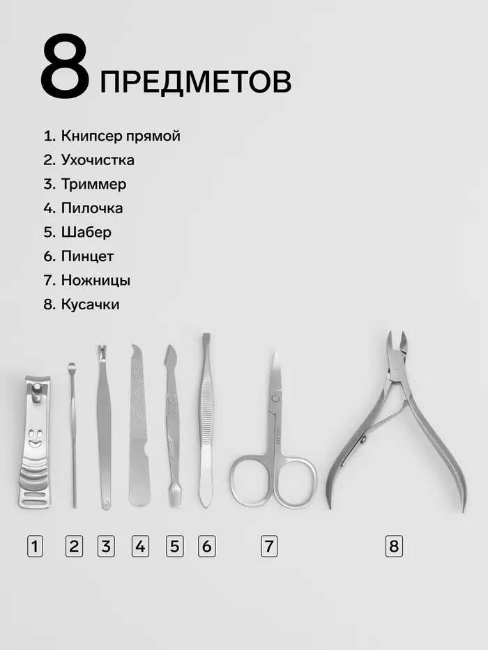 - 8 основных инструментов: кусачки, ножницы, триммер и другие