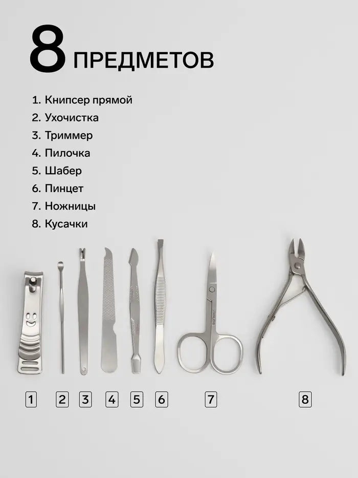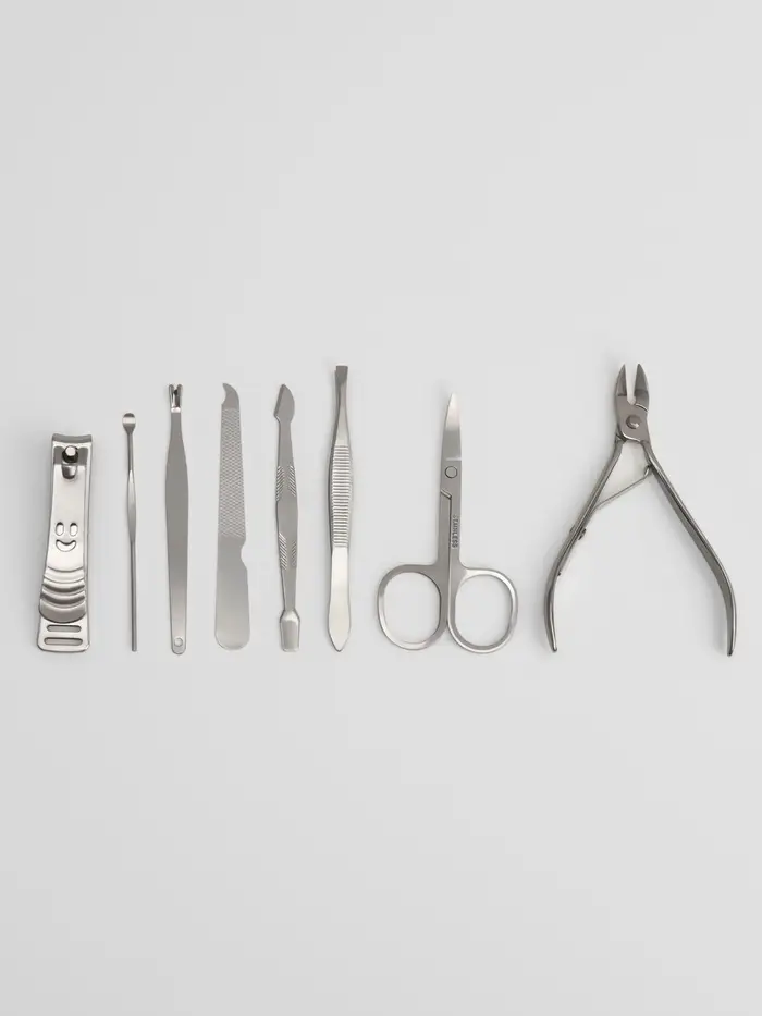 Металлические инструменты сохраняют остроту, не деформируются со временем и легко моются. Футляр плотно закрывается, фиксируя каждый предмет на своём месте — ничего не болтается, не царапается. Набор соответствует стандартам ухода за ногтями и подходит для домашнего использования и поездок.