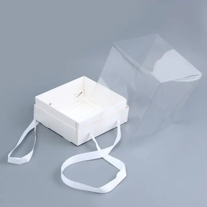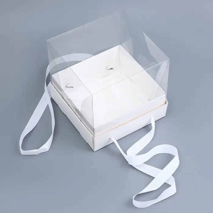 - Полностью прозрачная крышка-купол из ПВХ: Прозрачная конструкция демонстрирует торт со всех сторон. Получатель видит мастичный декор, шоколадные элементы и ягодное оформление, не вскрывая упаковку. Крышка надежно фиксируется на основании, защищая крем от сминания и контакта с внешними поверхностями при транспортировке.