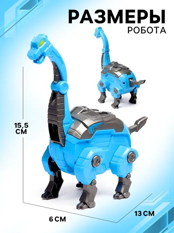 Добро пожаловать в мир доисторических приключений! Робот-трансформер «Бронтозавр» легко превращается из могучего динозавра в компактное яйцо и обратно. Уникальный дизайн и голубой футуристический стиль делают его особенно привлекательным для маленьких исследователей.