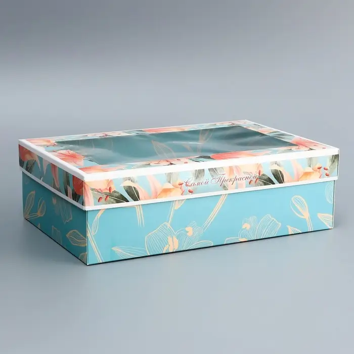 Праздничная складная коробка с крышкой-дном – идеальный вариант для оформления подарка.