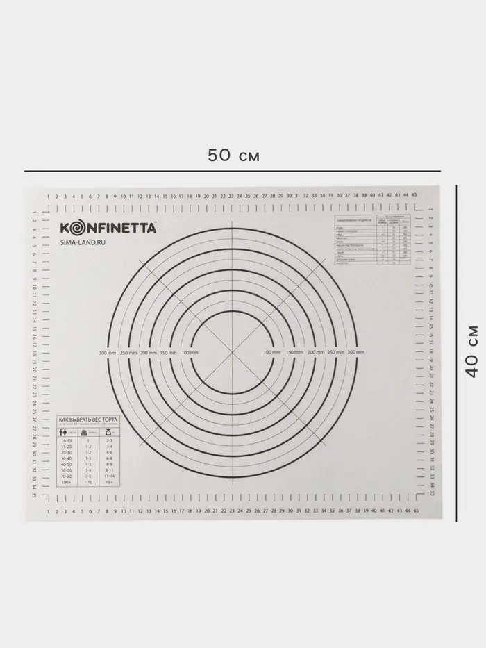 - Размер 40×50 см оптимален для раскатки теста и запекания в духовых шкафах.
