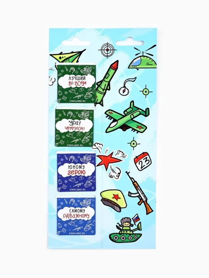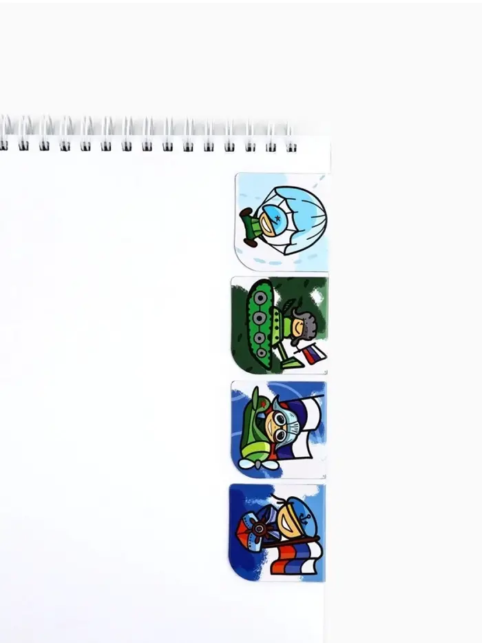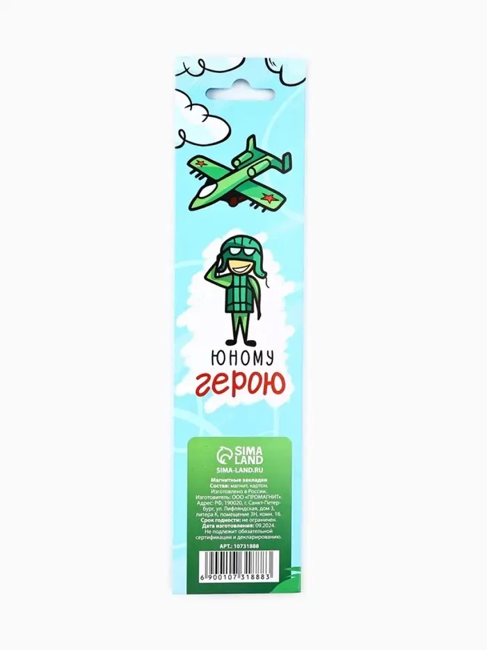 Магнитные закладки для книг, 4 шт. в открытке «Юному герою, с 23 февраля!»