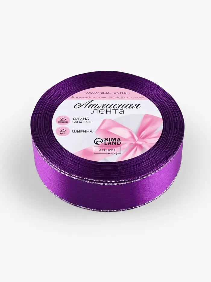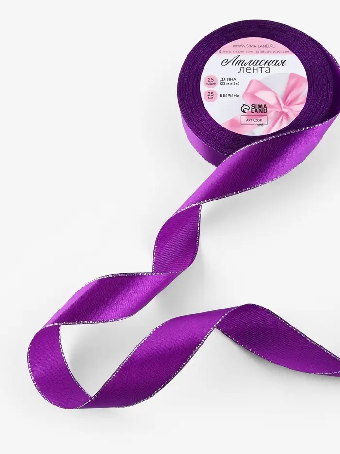 Лента атласная, с серебряным люрексом, 25 мм, 23±1 м, фиолетовая №35