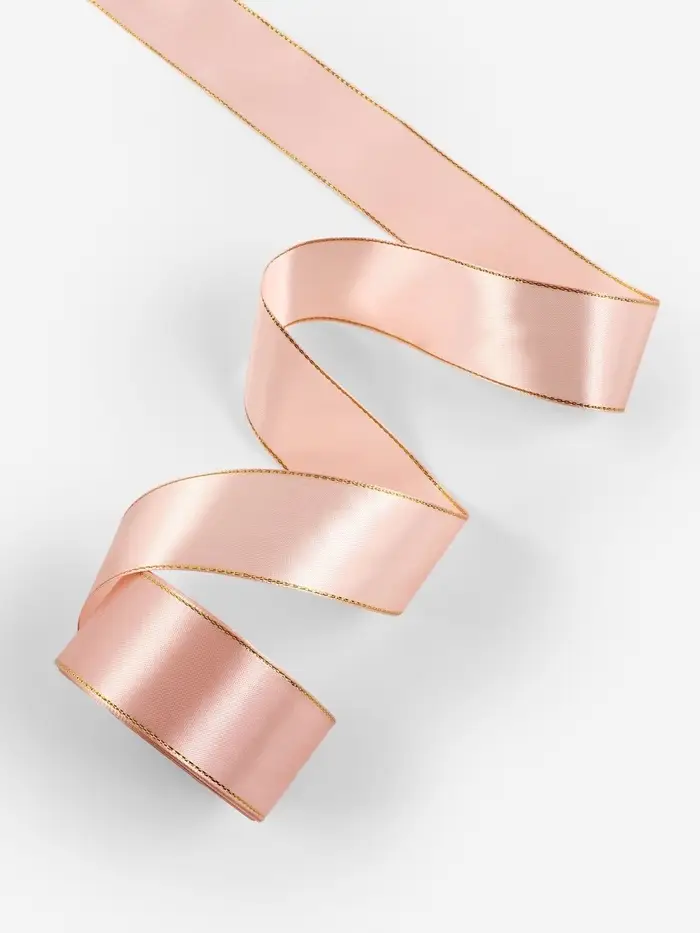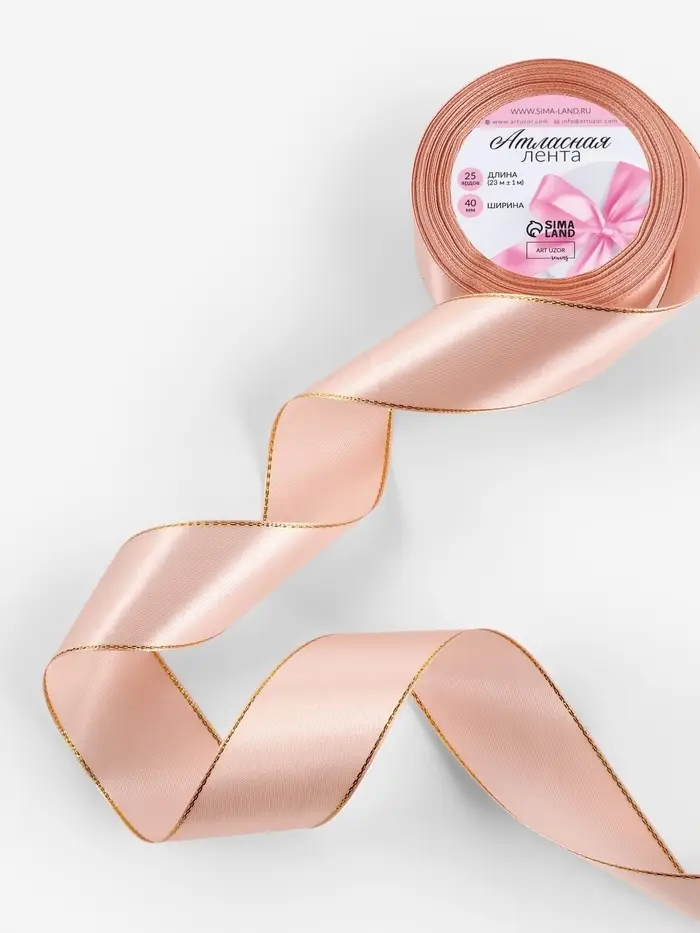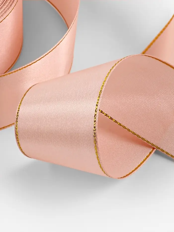 Наша светло-розовая атласная лента с золотым люрексом создана для тех, кто ценит элегантность и роскошь в простых моментах. Эта изысканная деталь украшения станет незаменимой в вашем арсенале для упаковки подарков, создания декораций или рукоделия. Полотно шириной 40 мм и длиной 23 метра — настоящее воплощение утончённости для креативных мастеров и дизайнеров.