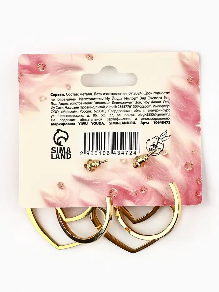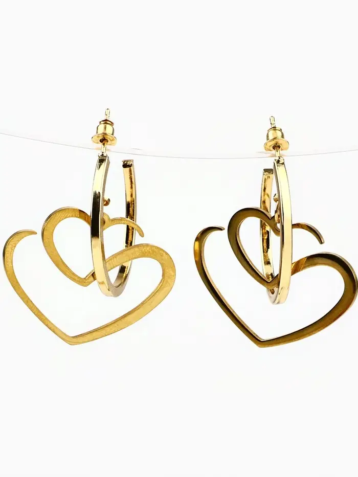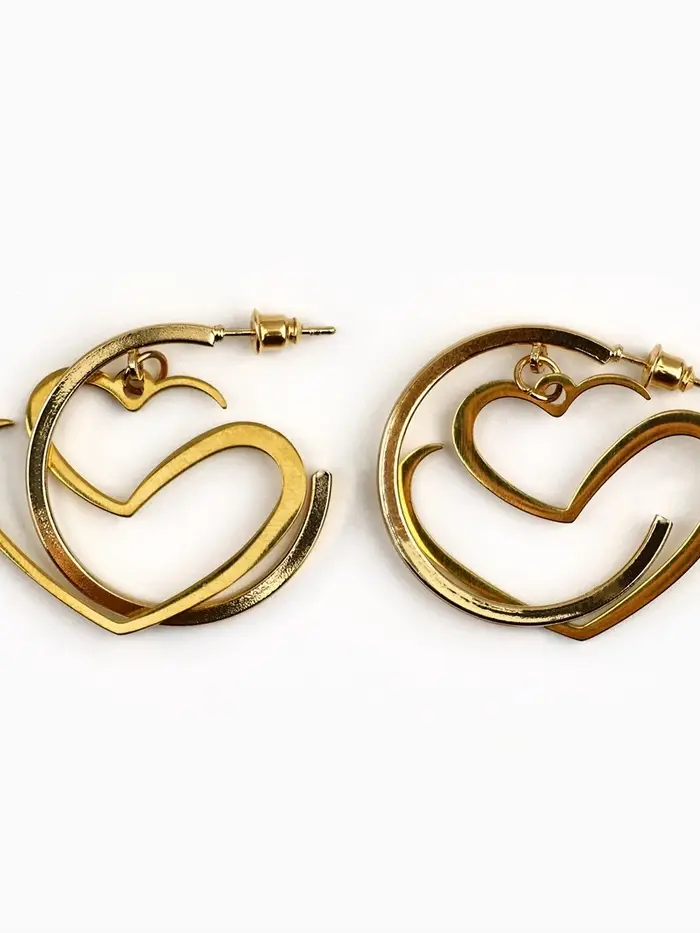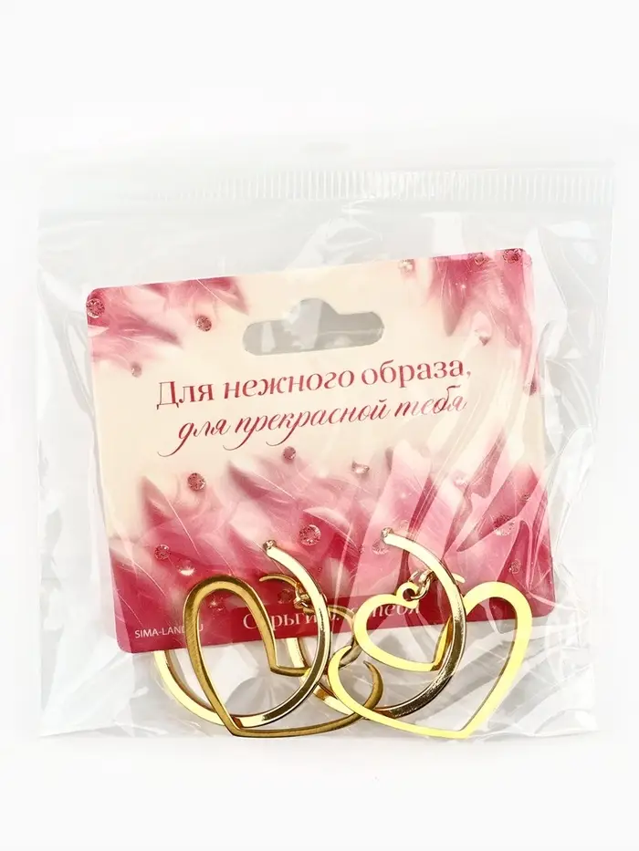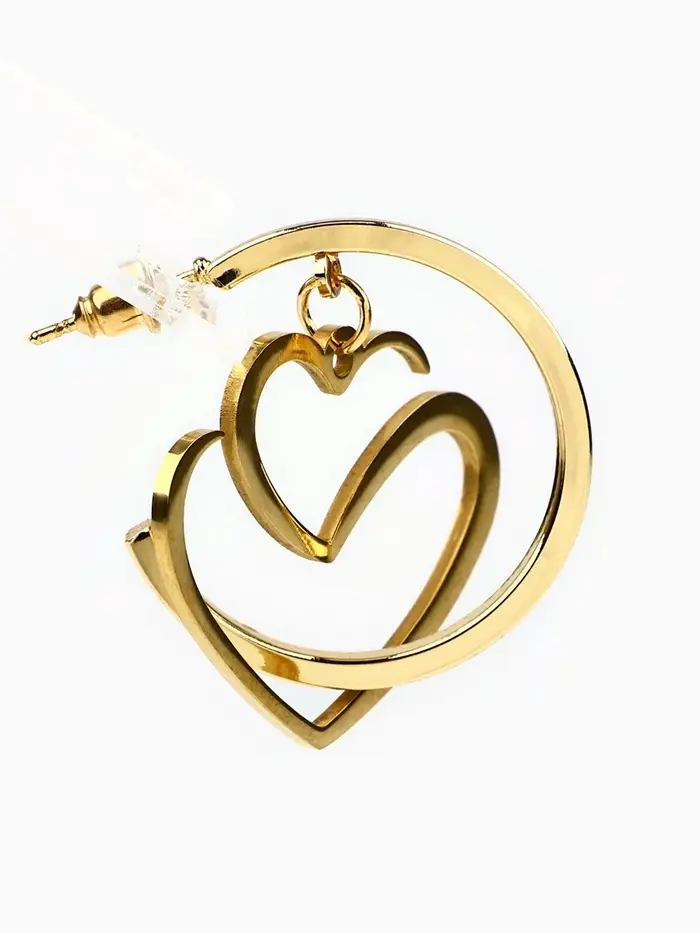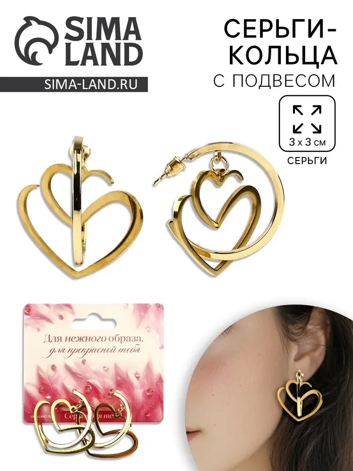 Серьги кольца с подвесом сердцем «Для нежного образа», 3 см