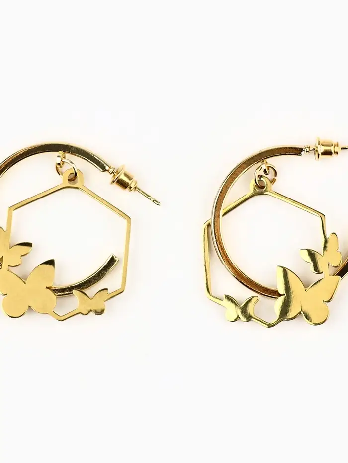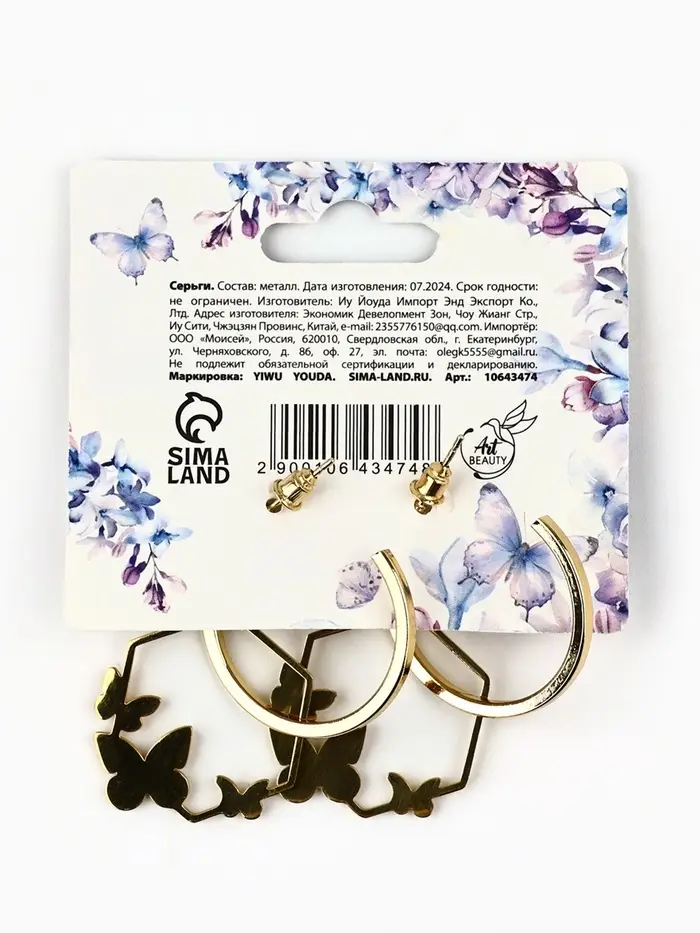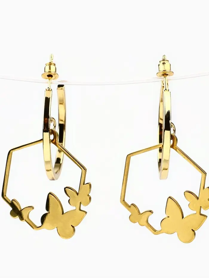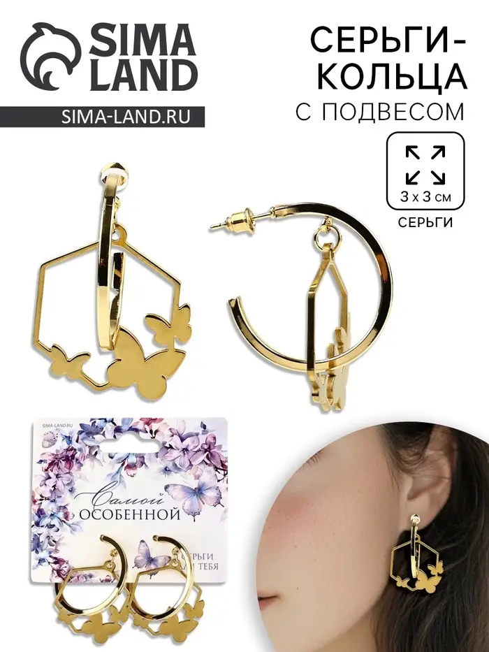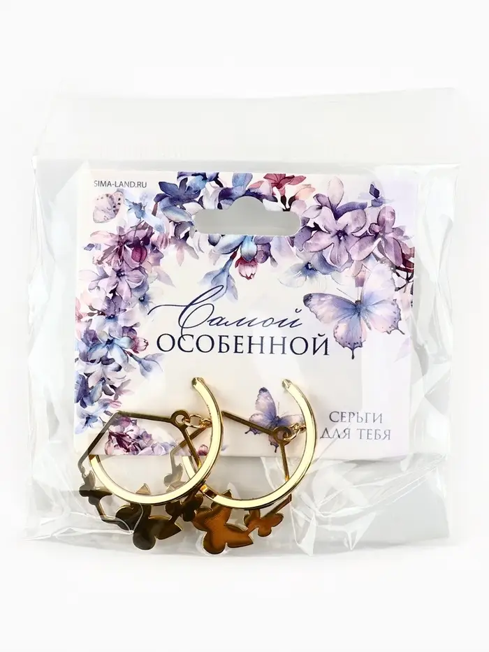 Серьги кольца с подвесом бабочками «Самой особенной», 3 см