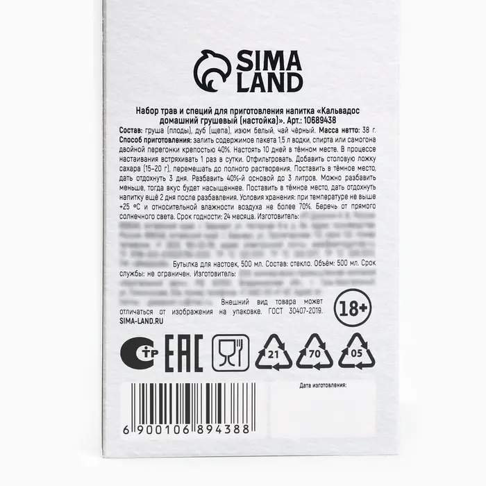 Подарочный набор для приготовления настойки «Грушевый кальвадос», набор трав и специй 38 г, бутылка 500 мл., инструкция