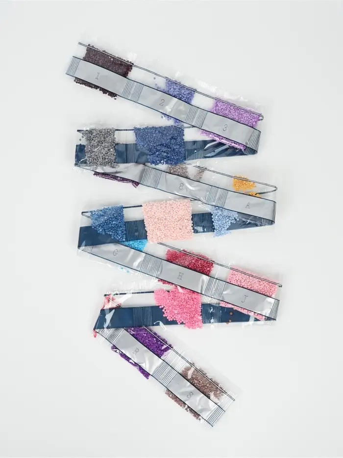 Вам предстоит разложить кристаллики карандашом по пронумерованной схеме. Холст с клеевым покрытием будет надёжно удерживать стразы.