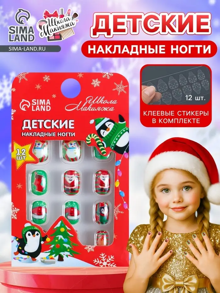 Детские накладные ногти на новый год «Новогодние подарки», 12 шт.