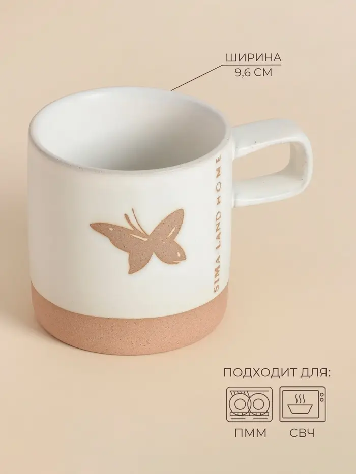 Позвольте себе насладиться утончённостью и уютом каждый день с кружкой, которая не только практичная, но и стильная. Эту керамическую кружку с изображением бабочек можно смело назвать отличным спутником для утреннего кофе или вечернего чая.